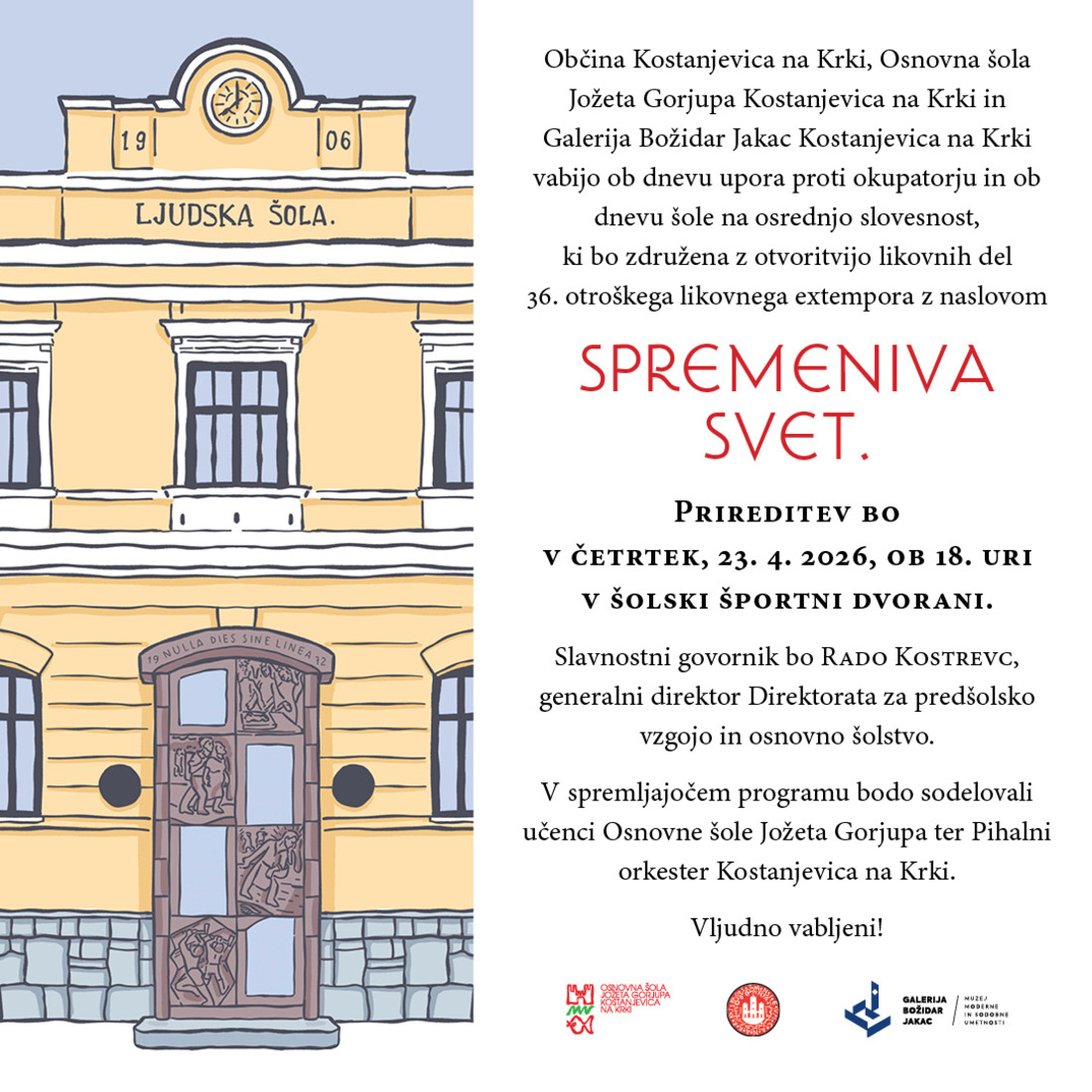 Vabilo na osrednjo prireditev ob Dnevu upora proti okupatorju in 36. otroškem likovnem extemporu